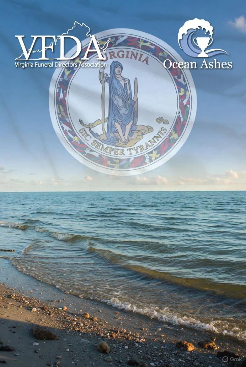 Ocean Ashes is proud to partner with the Virginia Funeral Directors Association (VFDA), offering seamless ash scattering services at sea as a trusted extension of their members' compassionate care, ensuring families across Virginia—from the beaches of Hampton Roads to the mountains of Southwest Virginia—can honor loved ones with dignity and warmth. Learn more at www.vfda.net.